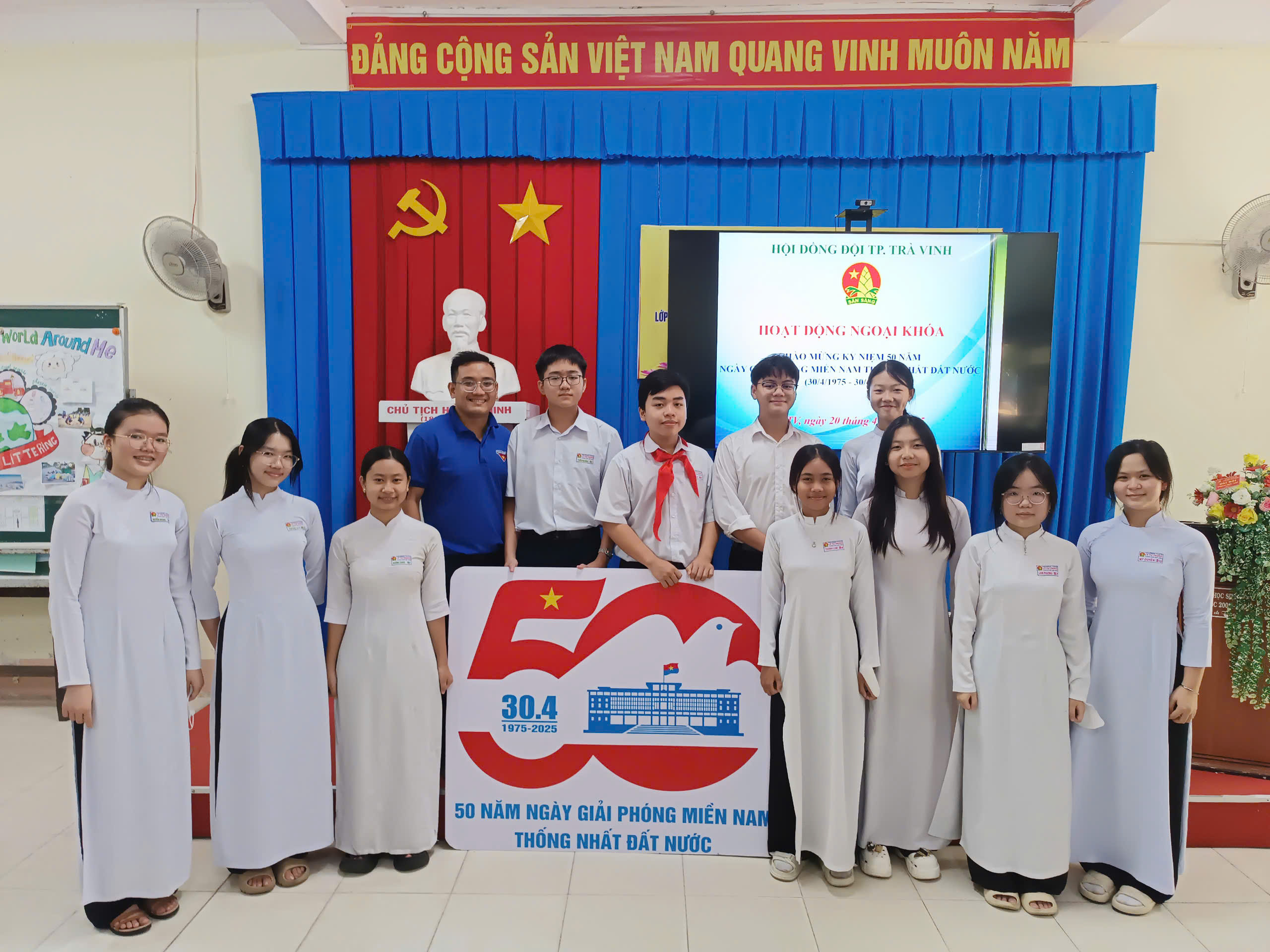 Nhằm tạo không khí thi đua sôi nổi trong thiếu nhi tham gia làm việc tốt chào mừng kỷ niệm 50 năm Ngày giải phóng miền Nam thống nhất đất nước (30/4/1975-30/4/2025), chiều ngày 20/4/2025, tại trường THCS Lý Tự Trọng Hội đồng Đội thành phố Trà Vinh tổ chức hoạt động chào mừng kỷ niệm 50 năm Ngày giải phóng miền Nam thống nhất đất nước (30/4/1975 – 30/4/2025), có 80 học sinh tham gia.